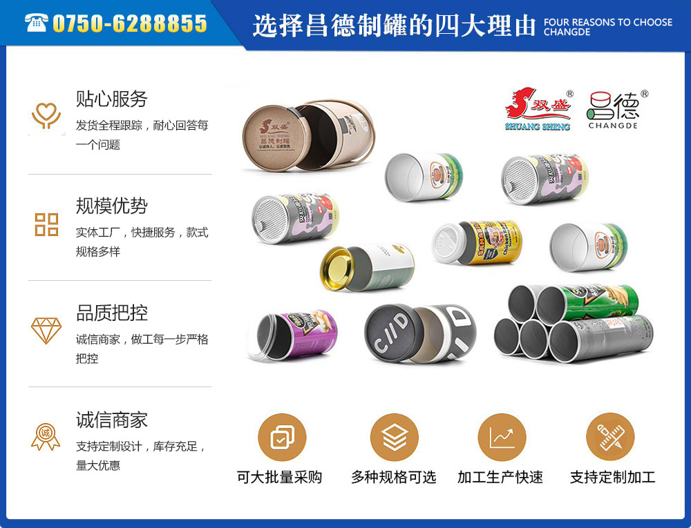江門市昌德五金制罐有限公司位于江門與珠海臨近的古井鎮(zhèn),是專業(yè)生產(chǎn)紙罐,食品紙罐系列的包裝研制、開發(fā)、生產(chǎn)的廠家,從建廠至今,公司本著“重合同、守信用”的原則,以“質(zhì)量求生存,客戶至上”為經(jīng)營宗旨,贏得了很好的信譽,公司擁有國內(nèi)一流的技術(shù)設備和多年的生產(chǎn)經(jīng)驗。年產(chǎn)休閑食品紙筒500萬左右,紙筒2000萬支左右,易拉罐,食品罐等1000萬左右,產(chǎn)品銷往各地。我廠是以高科技為先導,以技術(shù)創(chuàng)新整合為手段,成為迅速崛起的專業(yè)性包裝企業(yè),憑借艱苦的創(chuàng)業(yè)精神和集體智慧,采用規(guī)范的現(xiàn)代企業(yè)運行機制,形成具有鮮明特色的企業(yè)文化模式和管理...